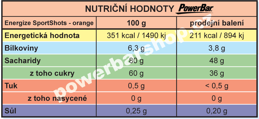 PowerBar Energize SportShots - pomeranč 60 gskladem53,00 Kč/ ks47,32 Kč bez DPH
